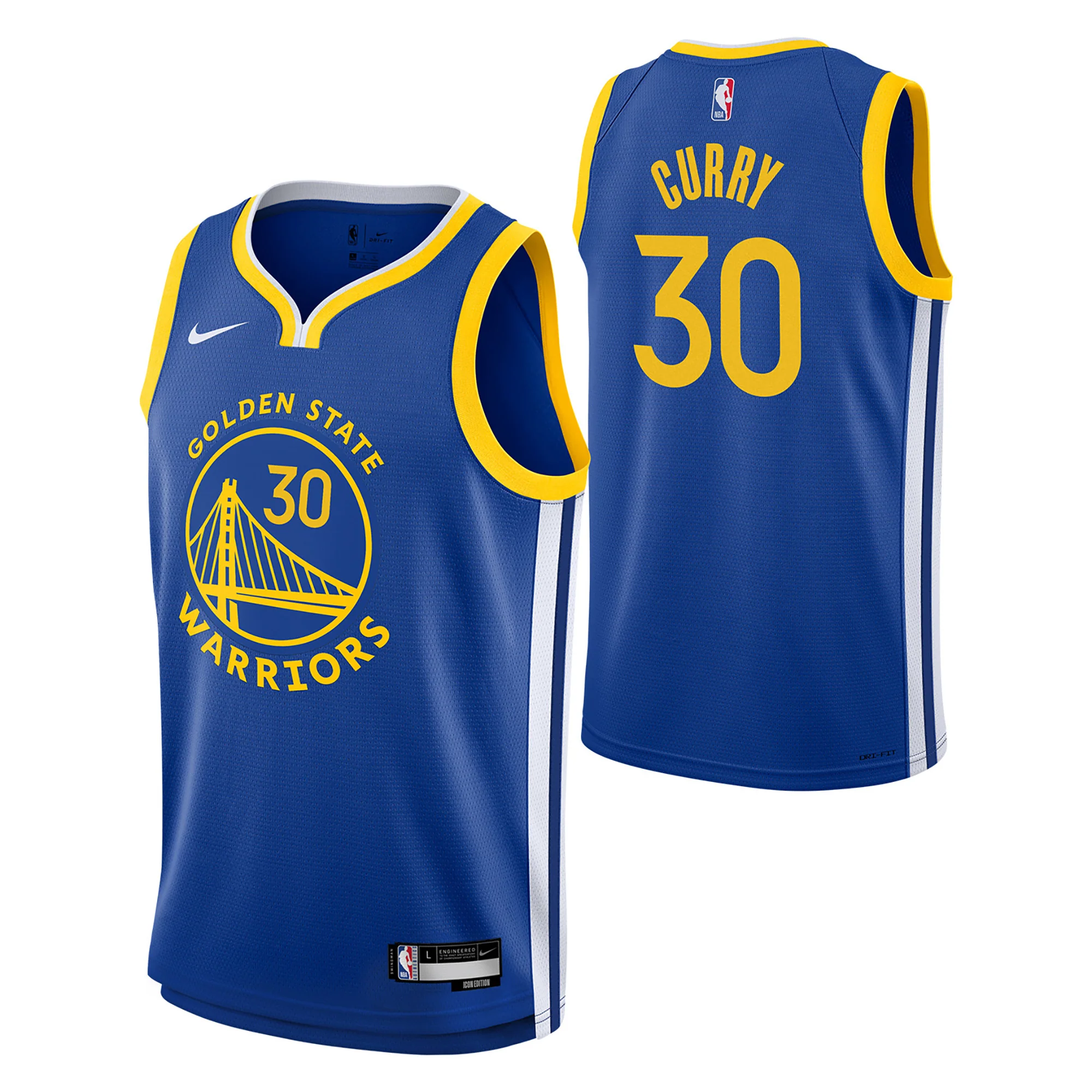 Rep Steph Curry in style with this officially licensed Warriors jersey. Made from recycled polyester, it features Dri-FIT ADV tech to keep you cool, lightweight stretch fabric for comfort, and stitched twill graphics for an authentic look.